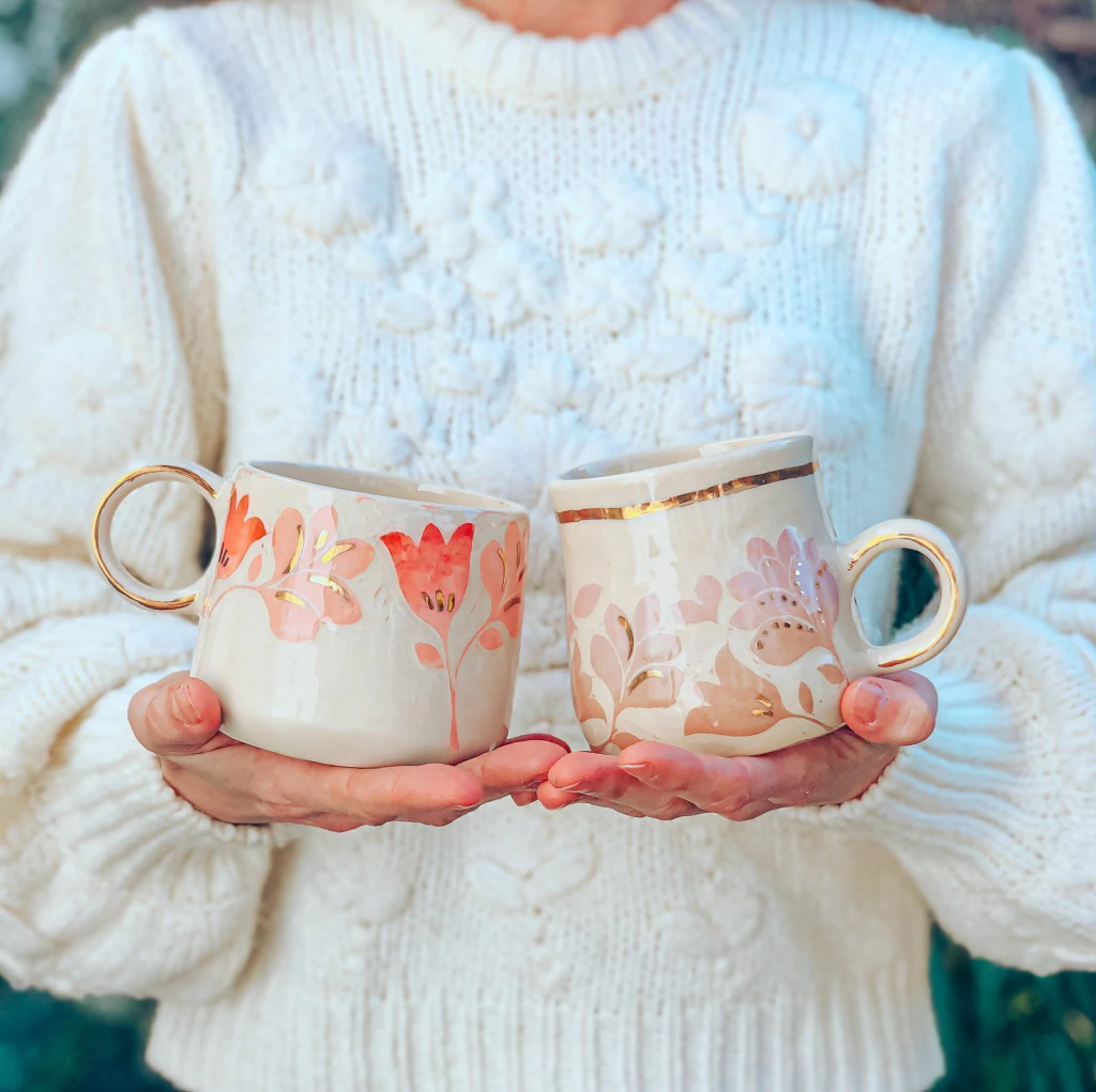 La taza Libia tiene 330 ml, esta pintada y tallada a mano mediante una técnica denominada esgrafiado. Posee detalles en oro por lo tanto no es apta para microondas, pero si para lavavajillas.